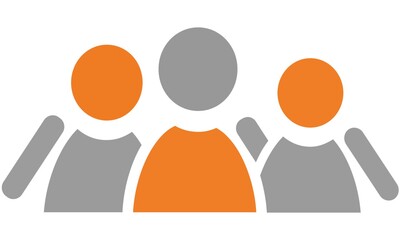Färgglada silhuetter av fyra personer med armarna uppsträckta i en glad gest mot ljus bakgrund.