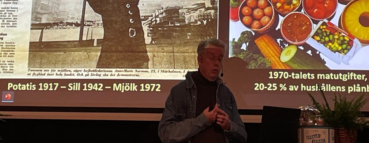 Medverkade gjorde Richard Tellström, docent i måltidskunskap och en av de främsta experterna på matkultur och måltidshistoria, som guidade oss genom kvällens olika maträtter. Den tidstypiska maten serverades av Cajsas kök. Uppsala konstmuseum bidrog med klassisk Uppsala-historia. Det blev en mycket rolig och lyckad kväll. Vi hoppas att kunna göra något liknande framöver med tema från ett annat decennium. 50-tal? 90-tal?